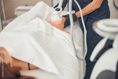 Lady getting skincare treatment on her legs