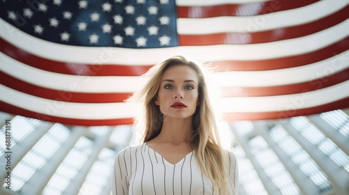 Lady holding the American Flag near the World Trade Center