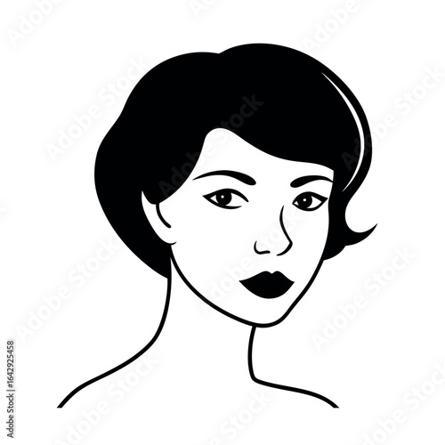 Lady with full lips and short pixie haircut in bold portrait Vector illustration