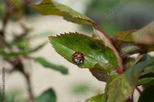ladybird on a green leaf
