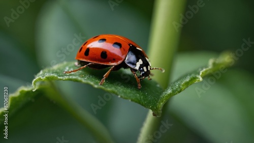 Ladybug on a leaf of a plant.