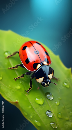 Ladybug with water droplets on leaf