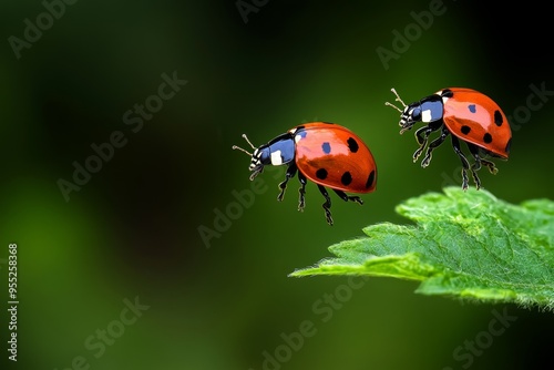 Ladybugs, fluttering wings, taking flight bring a moment of joy as they lift into the air