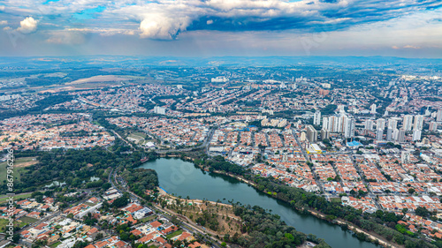 Lagoa do Taquaral ou Parque Portugal na cidade de Campinas, São Paulo. Vista aérea.