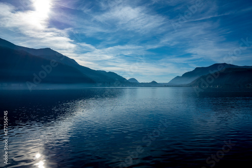 Lake Lugano with Sunlight and Mountain in Morcote, Ticino in Switzerland.
