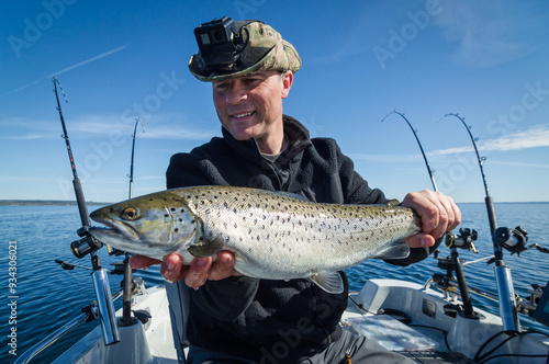 Lake trout trolling fishing spring