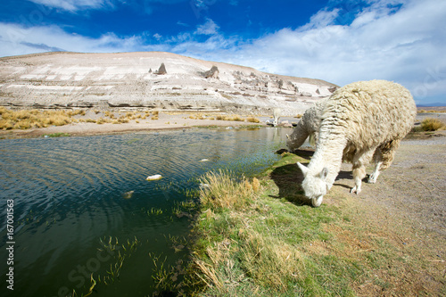 lamas in Andes,Mountains, Peru