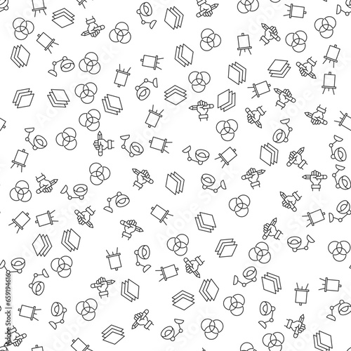 Lamp, drawing, Stack of Documents, Intersected circles, Easel Vector Seamless Pattern for websites, wrapping, printing backgrounds and other purposes