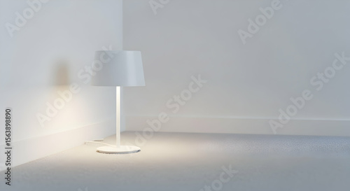 Lamp Illuminates Corner of Room with Soft Light in Minimalist Interior Design Style