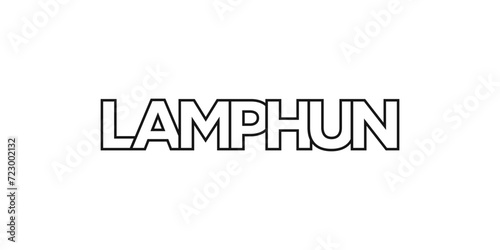 Lamphun in the Thailand emblem. The design features a geometric style, vector illustration with bold typography in a modern font. The graphic slogan lettering.