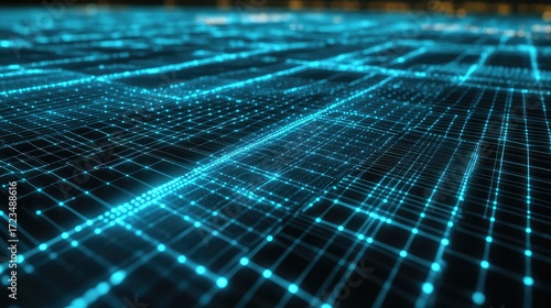land futuristic wire glowing effect on rural land plot