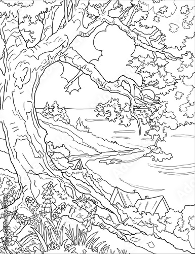 Landscape coloring pages, Landscape drawing for kids, Nature drawing, Landscape illustration, Coloring pages