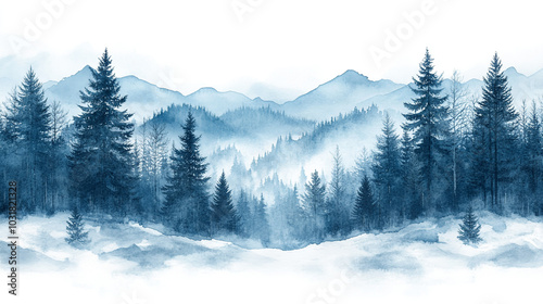 landscape of snow-capped mountains in the forest