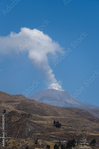 Landscape of volcano smoke. Colca, Peu