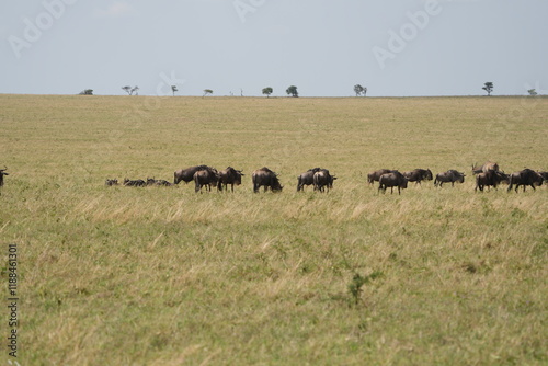 landscape photograph capturing the migration of wildebeest (gnus) in the serengeti national park tanzania