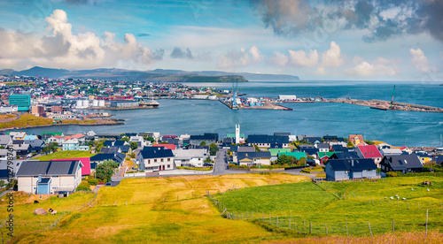 Landscape photography. Captivating summer sityscape of Torshavn town. Wonderful morning scene of Streymoy island, Faroe, Denmark, Europe. Traveling concept background.
