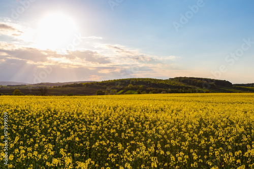 landscape, Ukrainian landscape, sunset in the field, apple blossom