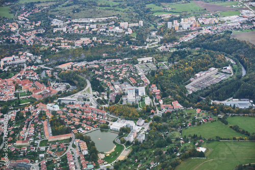 Landscape view from sport plane on Czech Republic, Sumava, South Bohemia.