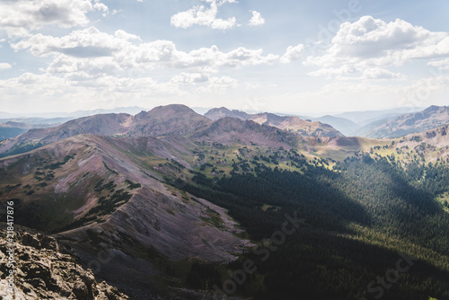 Landscape view of a mountain valley near Silverthorne, Colorado.