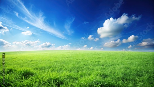 Landscape view of green grass under clear blue sky, meadow, nature, panorama, scenery, environment, outdoor, tranquil, field