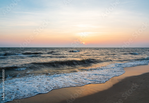 Landscape viewpoint panorama summer sea wind wave cool holiday calm coastal sunset sky light orange golden evening day look calm Nature tropical Beautiful sea water travel Bangsaen Beach thailand