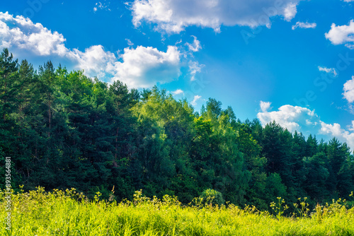 Landscape with field and forest. Summer background with countryside.