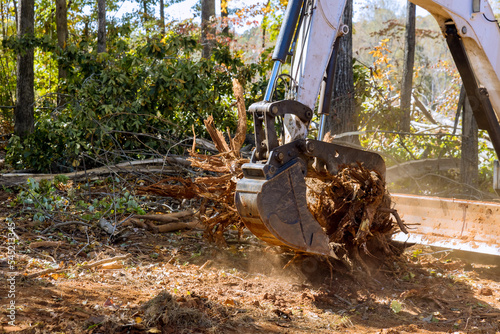 Landscaping company was using tractor skid steers to clear land of roots for construction housing subdivision