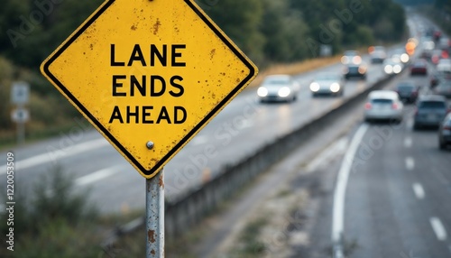 Lane Ends Ahead Warning Sign Highway Traffic Safety