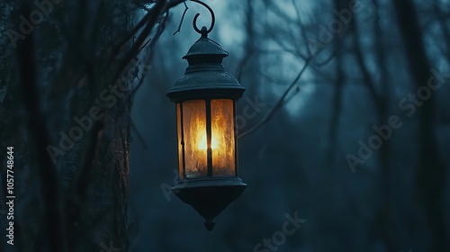 lantern and silhouetted trees