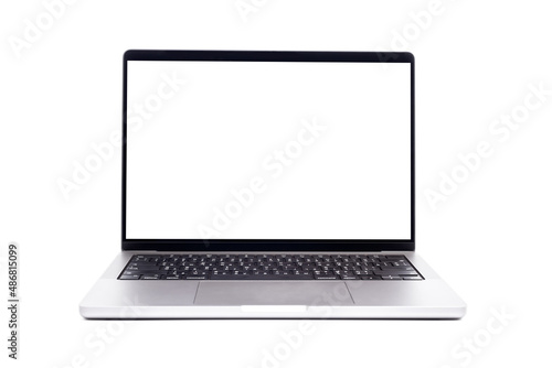 Laptop computer isolated on a white background. Notebook with blank white screen with clipping path