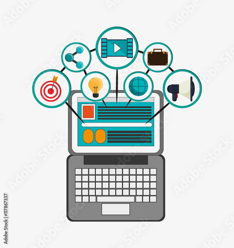 laptop social network media multimedia icon set. Colorfull illustration. Vector graphic