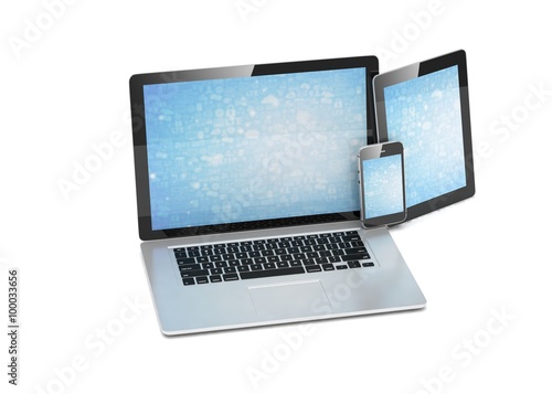 laptop, tablet, phone, on white