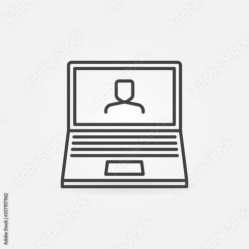 Laptop Video Conference line icon. Webinar or Online Meeting vector concept symbol in outline style