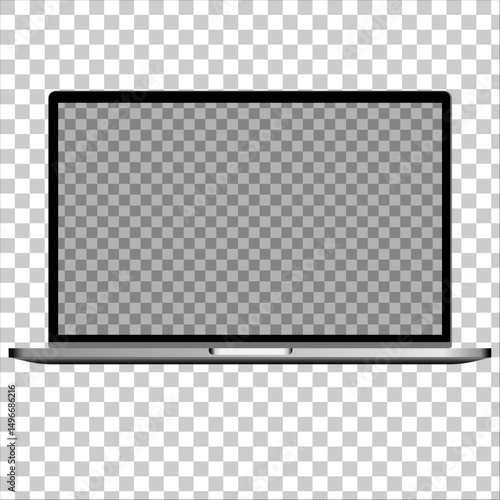 Laptop with blank screen isolated on transparent background, white aluminum body. Whole in focus. High detailed. Template, mockup vector illustration