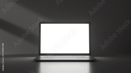 Laptop with Blank White Screen on Dark Background in Dramatic Lighting