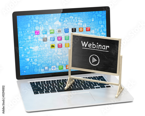 Laptop with chalkboard, webinar, online education concept