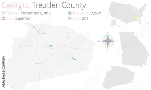 Large and detailed map of Treutlen county in Georgia, USA.