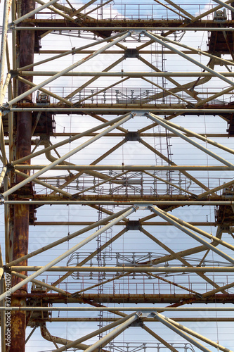 Large antenna field. Soviet radar system "Duga" at Chernobyl nuclear power plant. ABM missile defense. Antenna field, over-the-horizon radar. Military object of USSR ABM. Secret Soviet Chernobyl -2