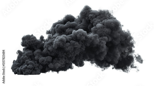 Large black smoke cloud on white, transparent background, dramatic and ominous atmosphere