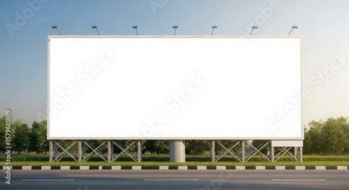 Large blank billboard beside a road, ready for advertisement, under a clear sky.