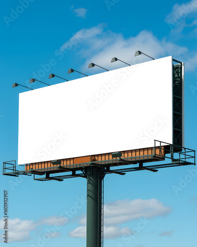 Large Blank White Billboard Against Blue Sky with Clouds empty advertising