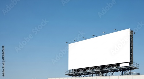 Large Blank White Billboard Against Clear Blue Sky with Ample Copy Space for Outdoor Advertising Campaign