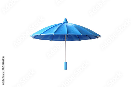 Large blue parasol with extended metal pole and segmented canopy design for outdoor shade protection, isolated on a transparent background