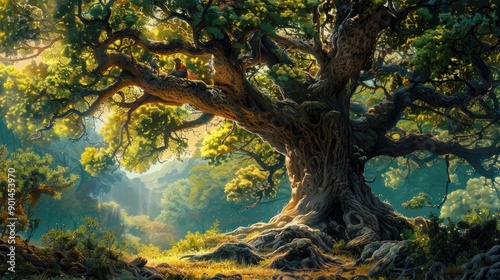 Large Chamchuri tree with a prominent trunk and elegant branches, adorned with lush foliage, creating a picturesque scene.