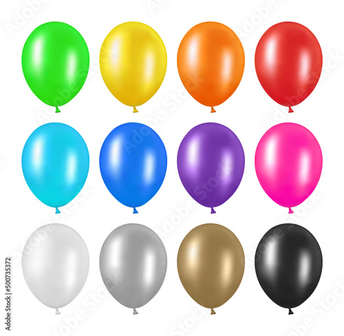 Large collection of balloons from 12 elements. Balloon set isolated on white background.