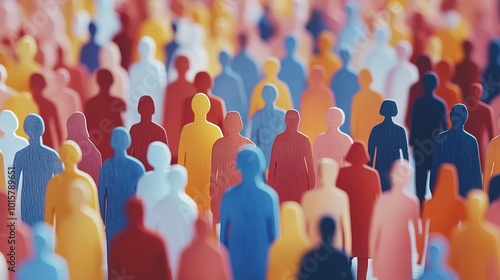 Large crowd of diverse people. paper cut out style