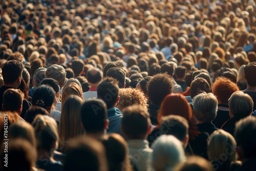 Large crowd of people, gathered outdoors, diverse, sunny day