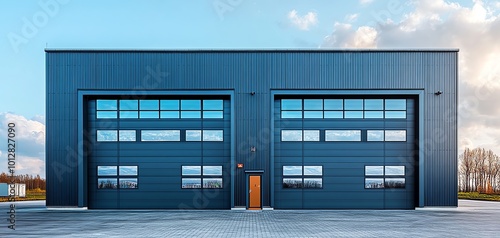 Large garage with windows and side entry door, isolated on white background, clip art style, great for custombuilt garage promotions