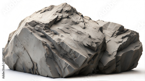 Large Gray Rock with Jagged Texture - Close-up of a large, jagged gray rock with rough edges and natural cracks, isolated on a white background.