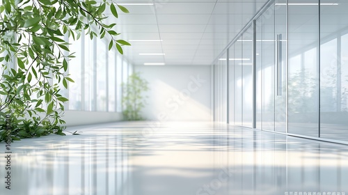 Large Greenery in Modern Glass Office: Bright and Spacious